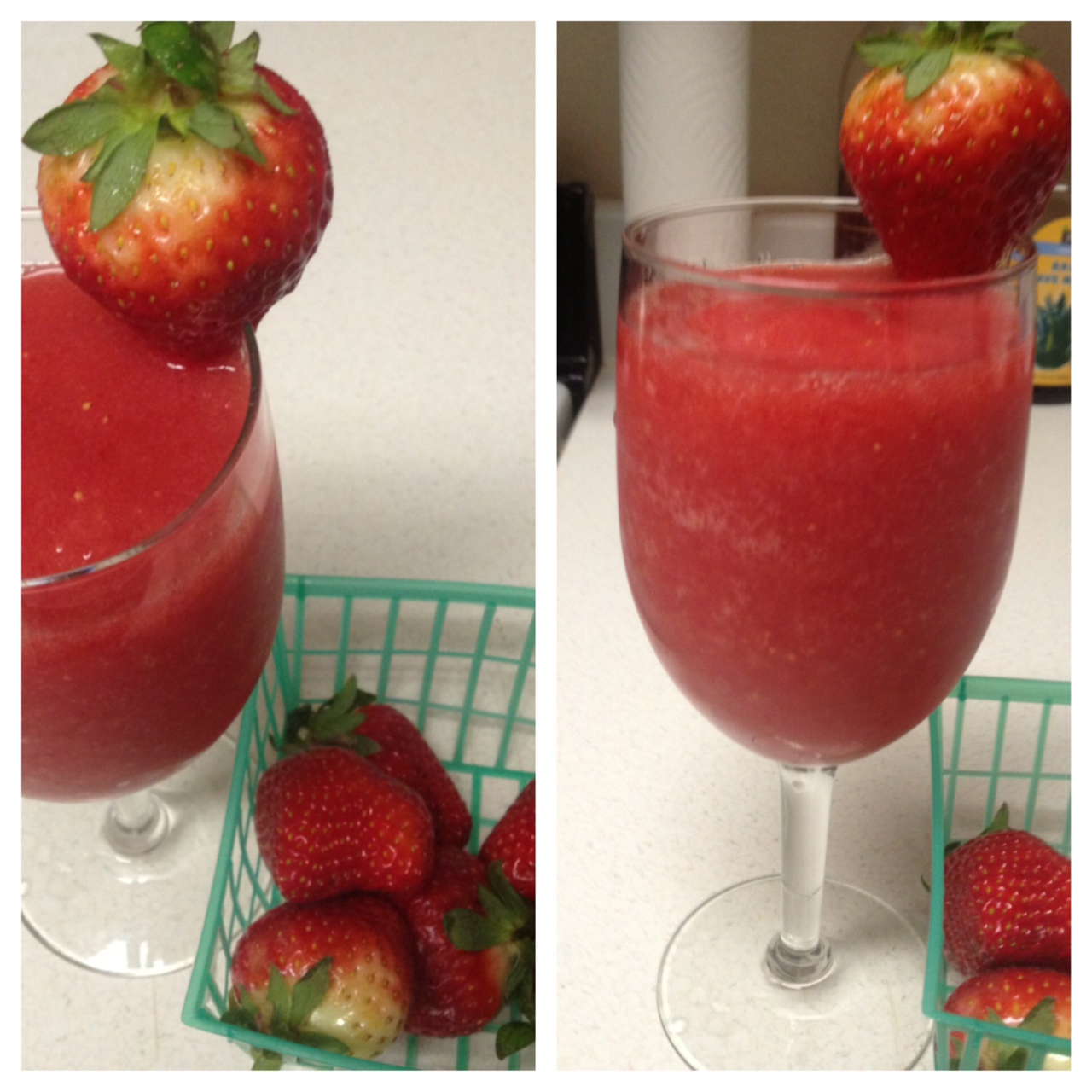 * Hand full of ice if using fresh strawberries and blend on high speed